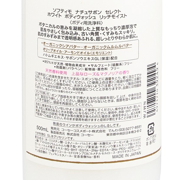 コーセーコスメポート ソフティモ ナチュサボン セレクト ホワイト ボディウォッシュ リッチモイストの商品ページ